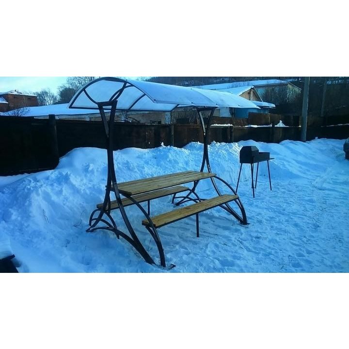 - Беседки с навесом из металлочерепицы или поликарбоната — сочетание прочности ковки и современной кровли для максимальной защиты от осадков.
