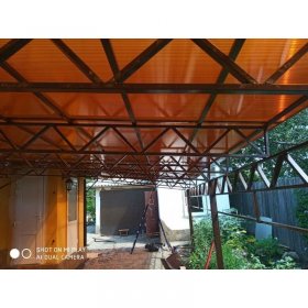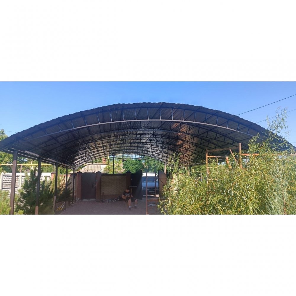 - Гаражные навесы — с усиленной конструкцией, скатом 25–30° для схода снега, возможностью установки металлочерепицы или поликарбоната сверху.